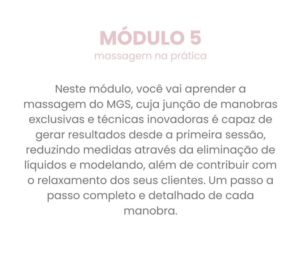 Você terá acesso à uma técnica de massagem exclusiva que gera resultados desde a primeira sessão, e você não precisará de nenhum aparelho pra isso.